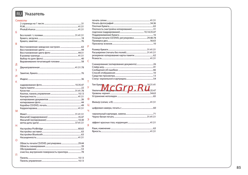 ![Epson Stylus Photo TX659 [85/88] Указатель ru](/views2/1055248/page85/bg55.png)
