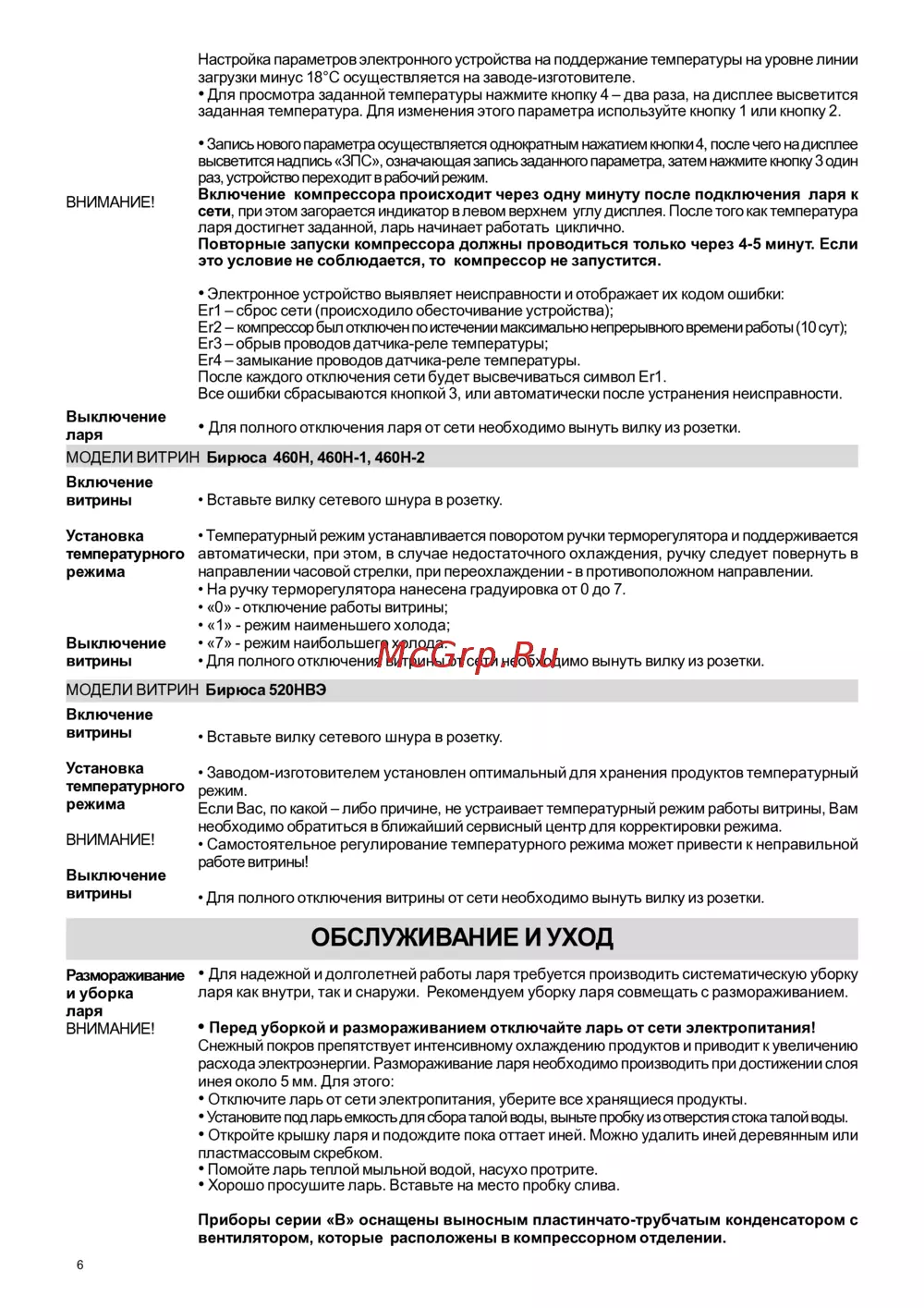 ![Бирюса 460H-1 [6/8] Обслуживание и уход](/views2/1013086/page6/bg6.png)