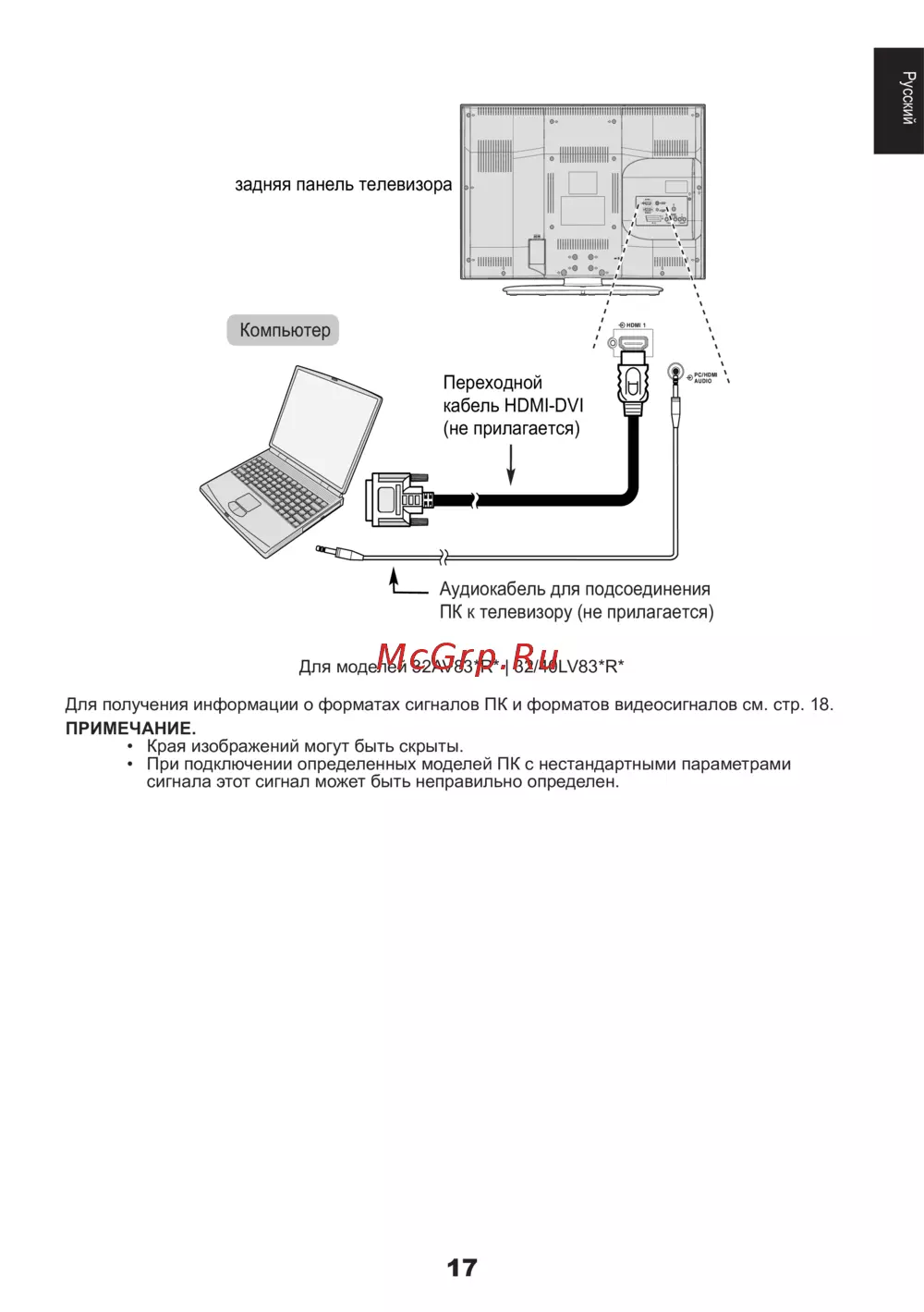 - Аудиокабель для подсоединения пк к телевизору не прилагается p.17