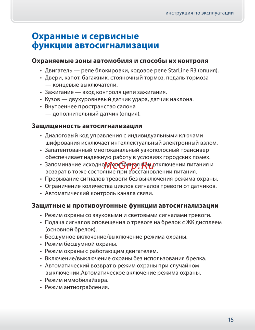 - Охранные и сервисные функции автосигнализации p.15