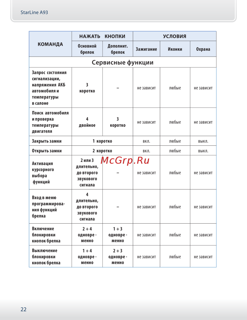 Starline a93 can-lin — функции и возможности автомобильной сигнализации [22/115]