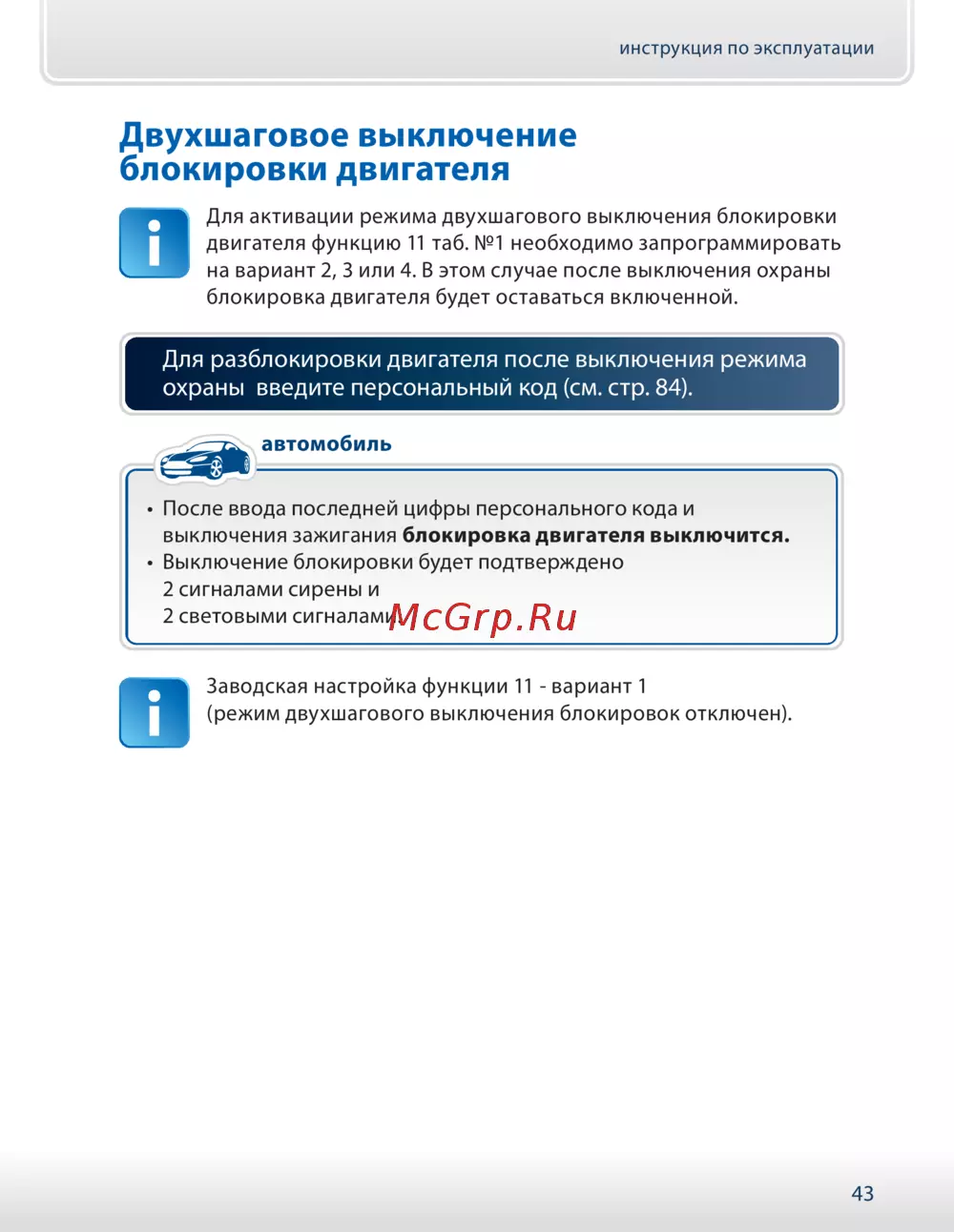 Starline a93 can-lin — инструкция по эксплуатации двухшагового выключения блокировки двигателя [43/115]