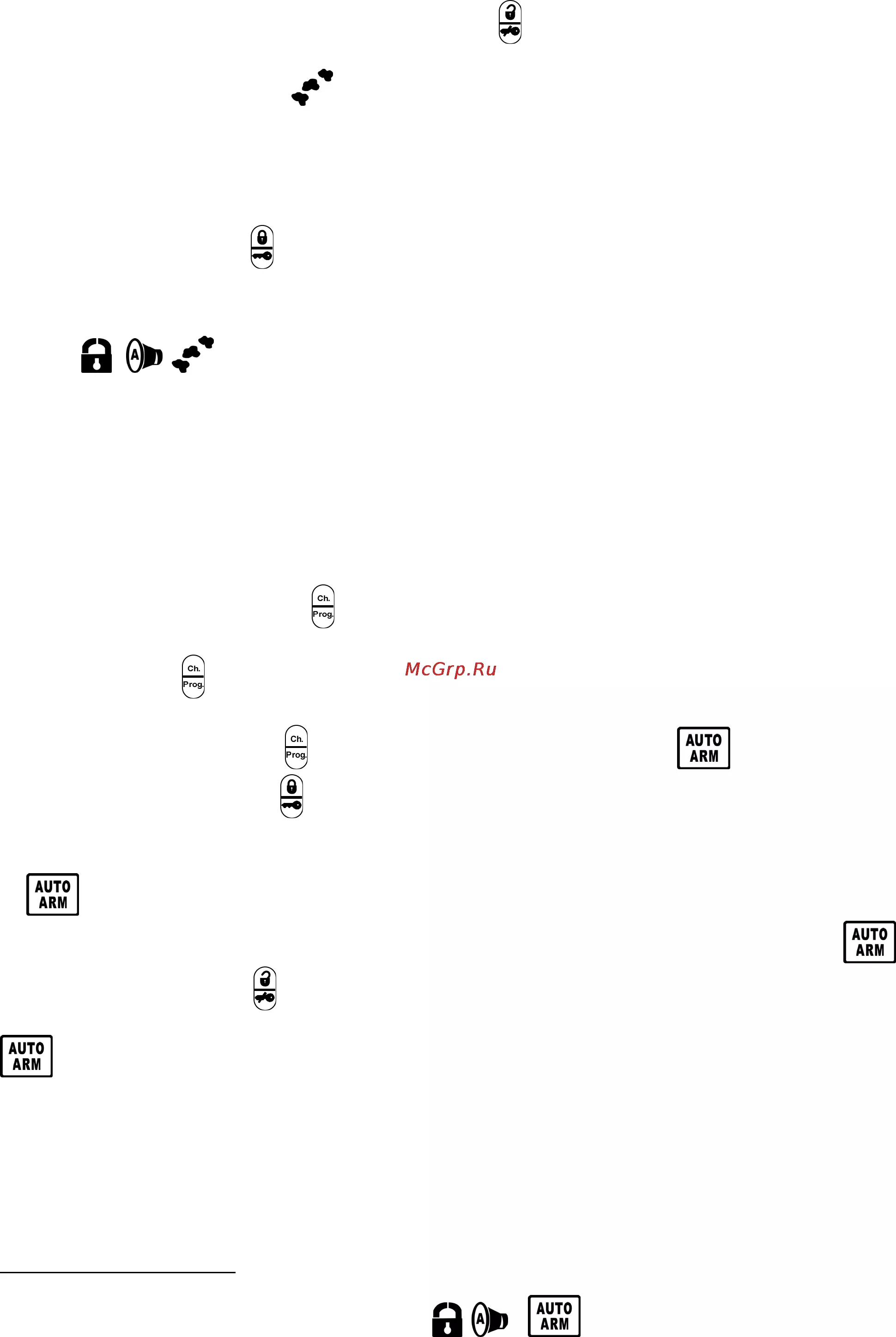 (кнопку 2) передатчика дважды в течение 0,5 с при включенной охране.