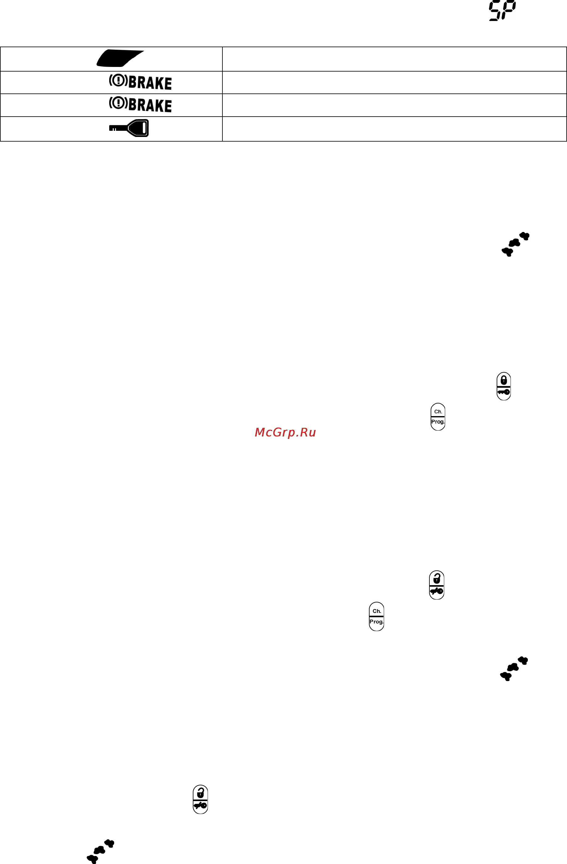 включения выхода системы на поддержку зажигания. На ЖК-дисплее передатчика включатся симво-