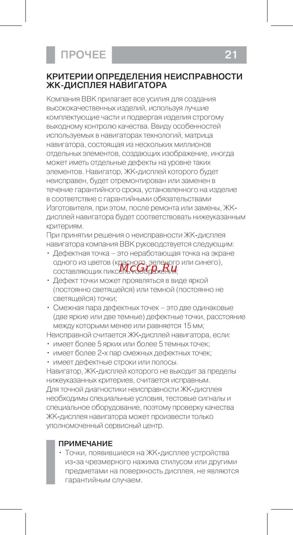 - Критерии определения неисправности жк дисплея навигатора p.23