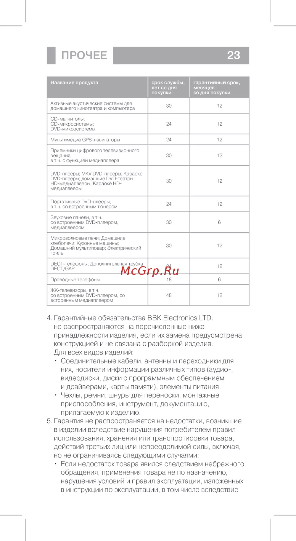 BBK N5041 — гарантийные обязательства и срок службы техники [25/30]