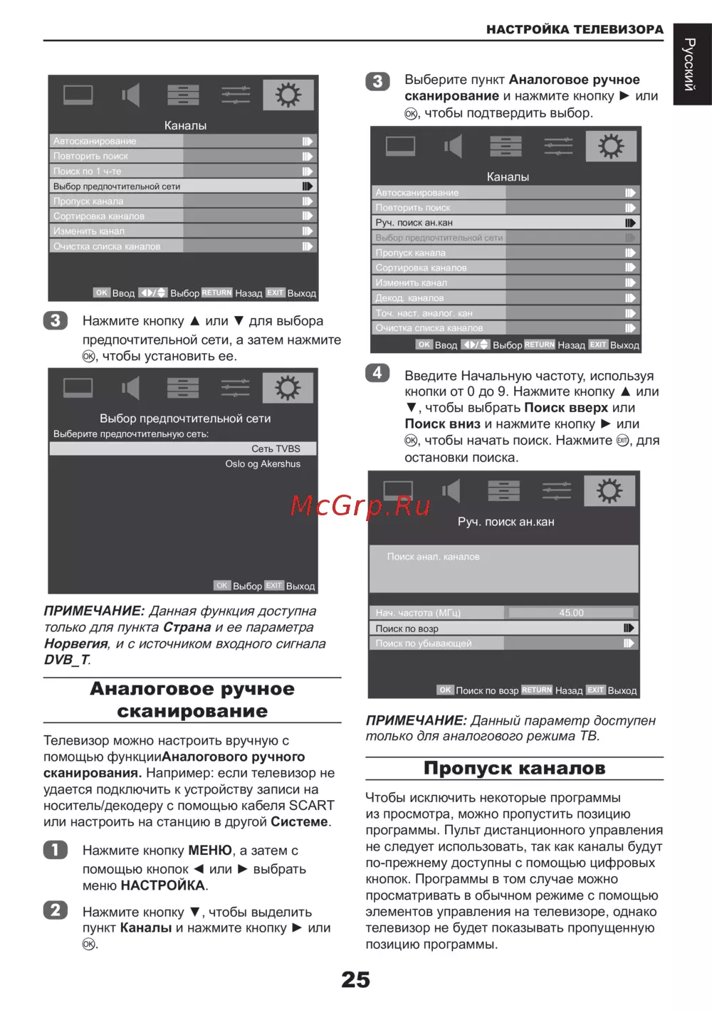 Узнайте, как настроить телевизор с помощью автосканирования и ручного поиска каналов. Подробные инструкции по выбору сети и пропуску каналов.