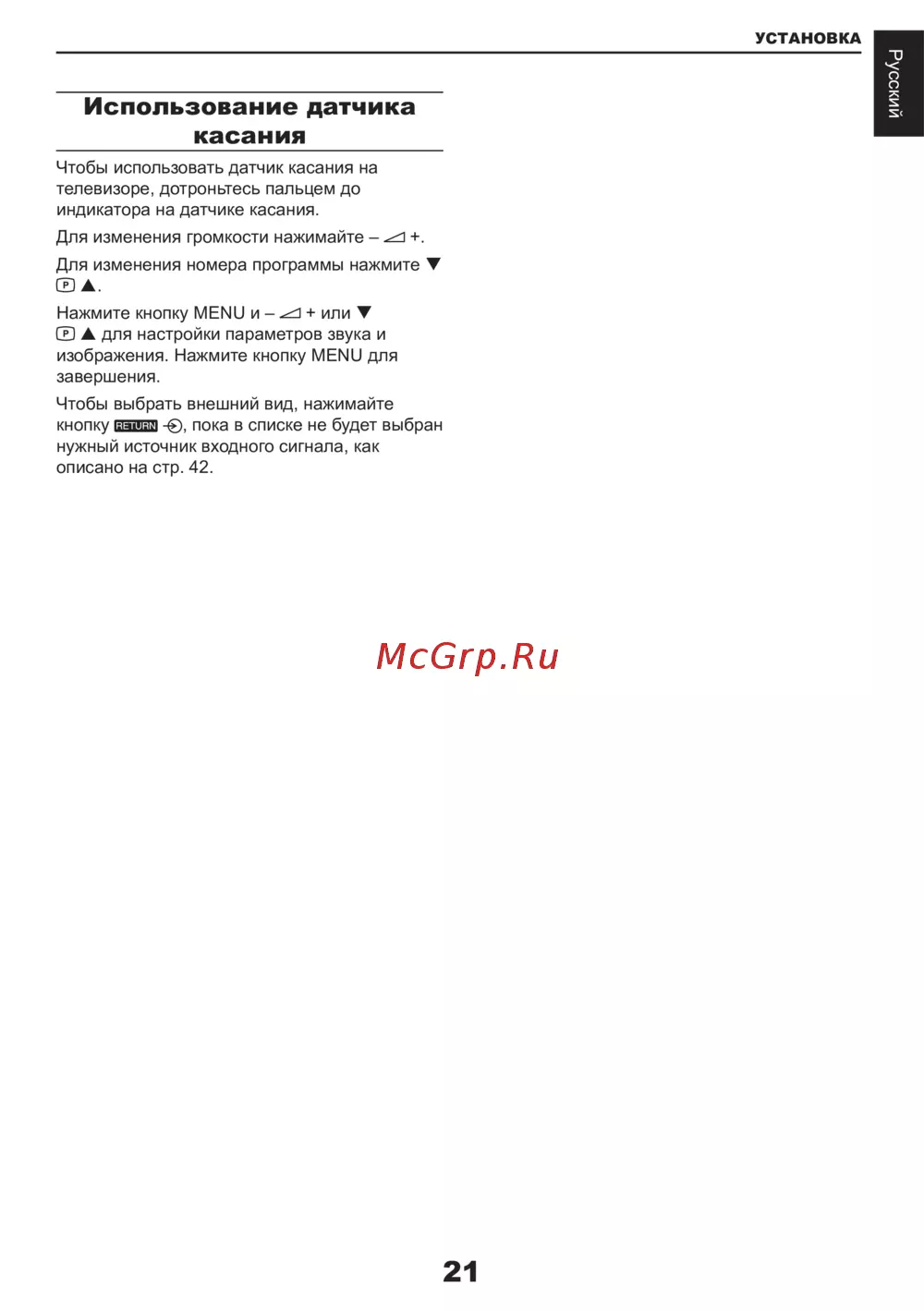 Toshiba 22SL738 — инструкция по использованию датчика касания на телевизоре [22/69]
