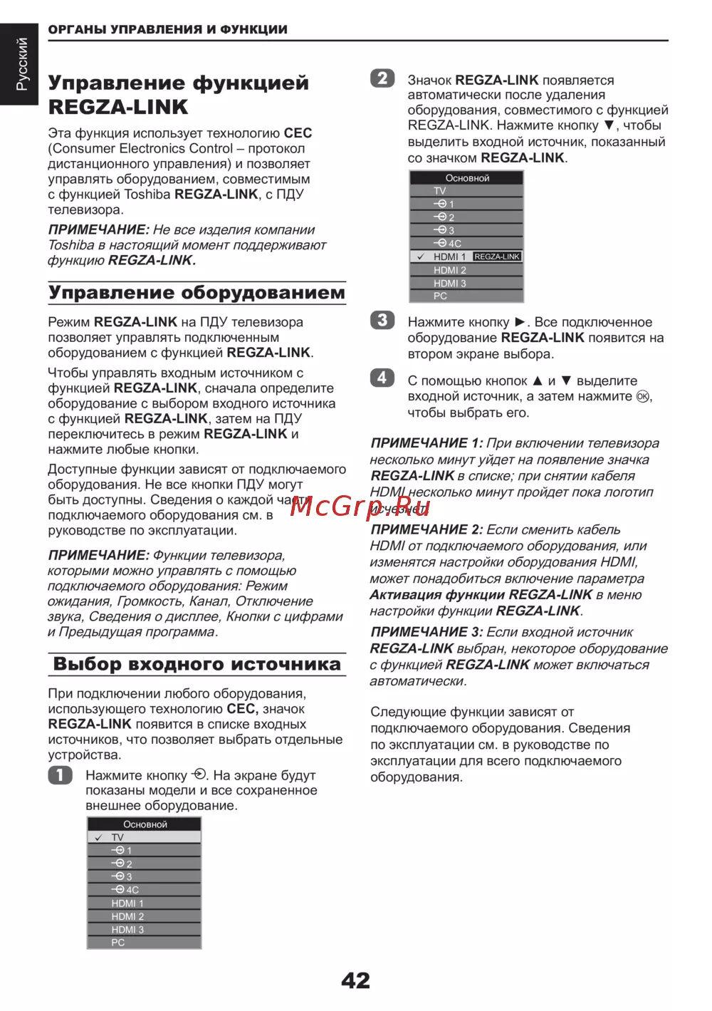 с функцией REGZA-LINK, затем на ПДУ