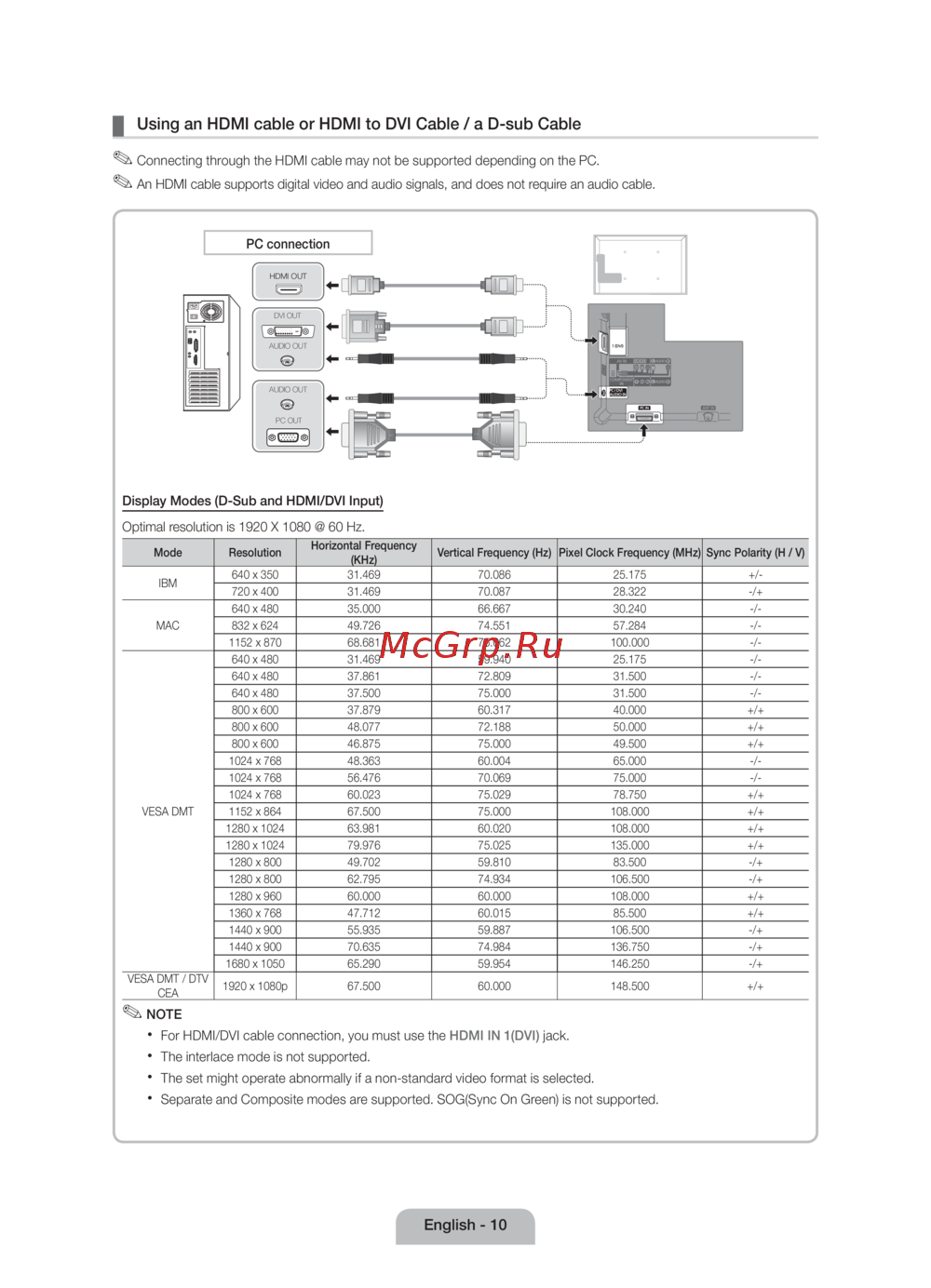 Samsung UE40D5000PW — оптимальные режимы отображения и подключения для мониторов [10/73]