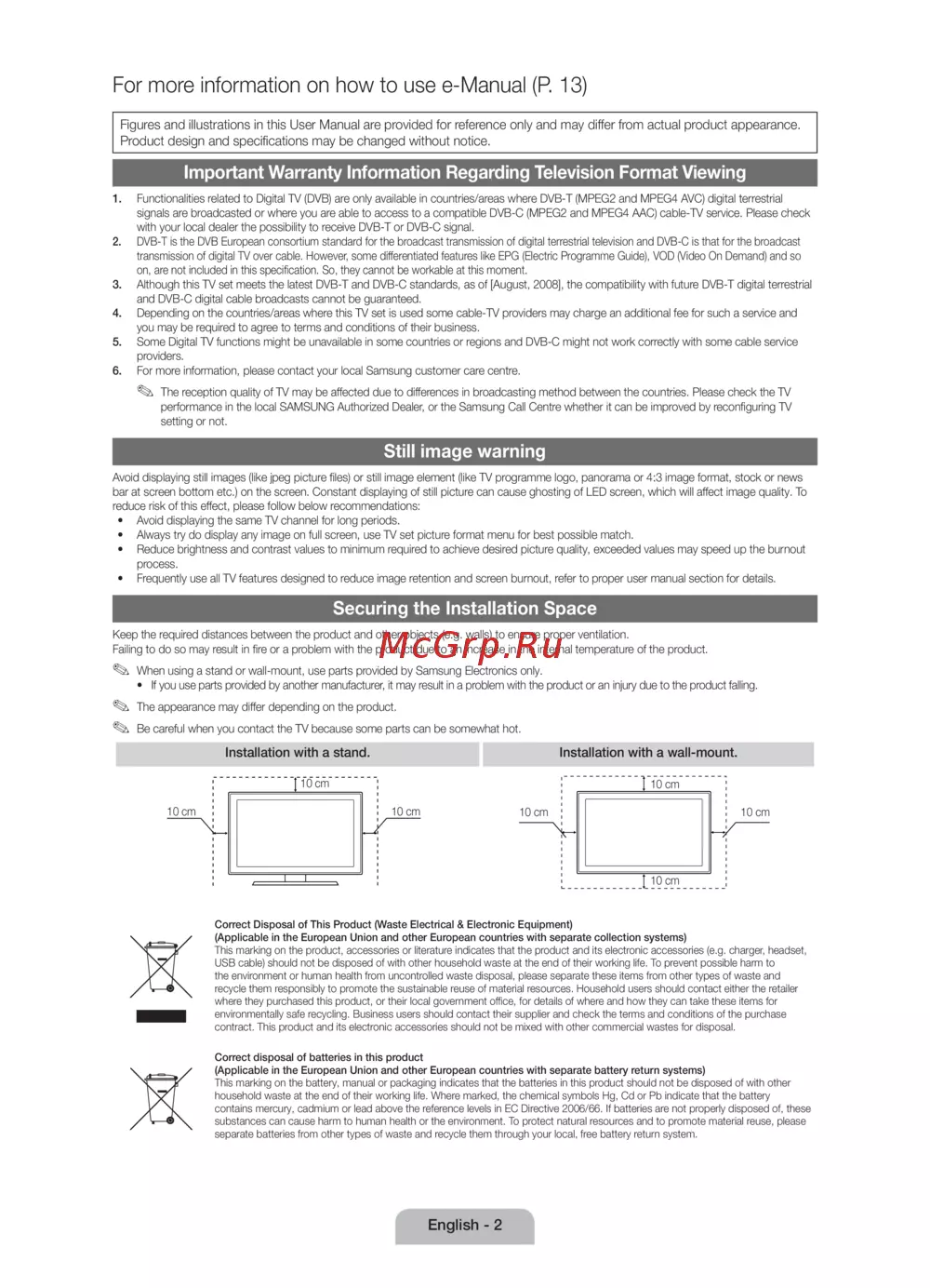 - Теледидар пішіміне қатысты кепілдік туралы маңызды ақпарат p.56