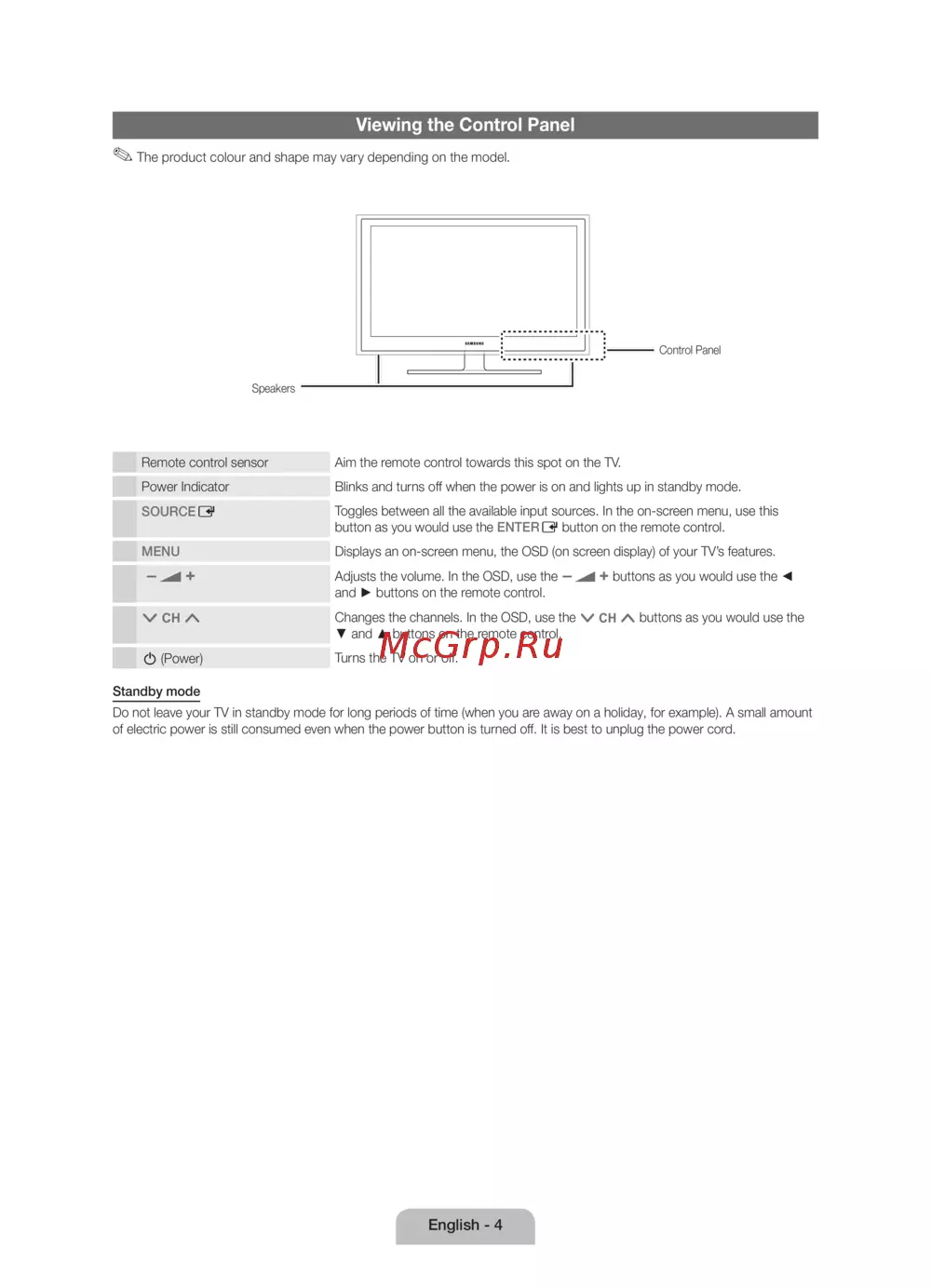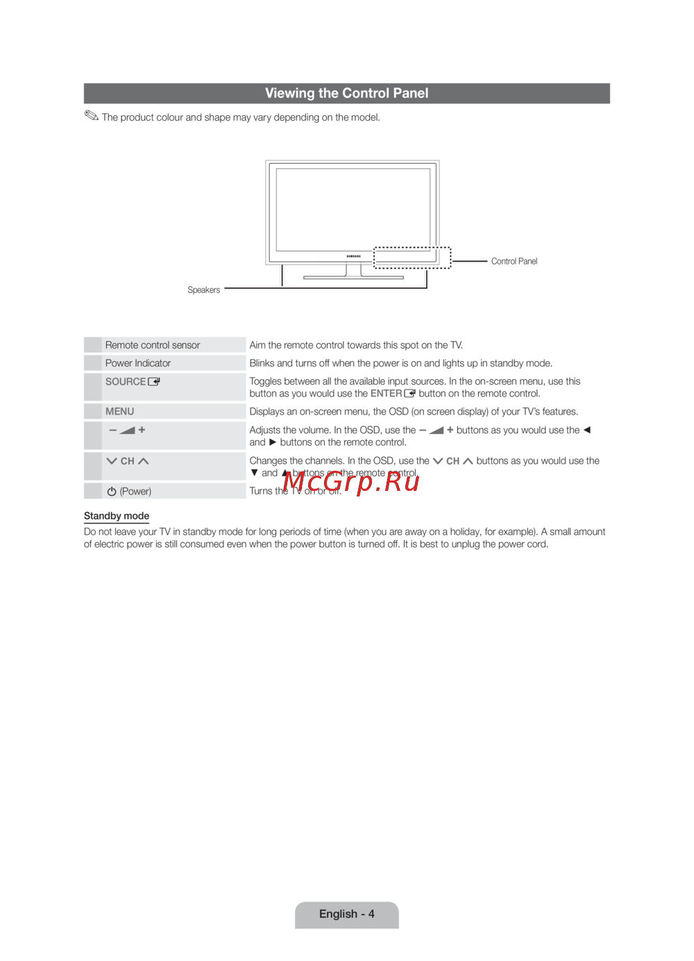 Samsung UE40D5000PW — управление панелью управления телевизора: основные функции [4/73]