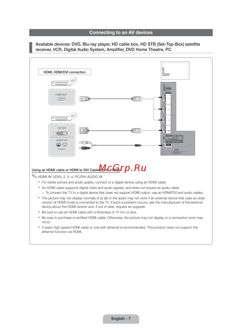 Samsung UE40D5000PW — как подключить AV устройства для лучшего качества изображения [7/73]