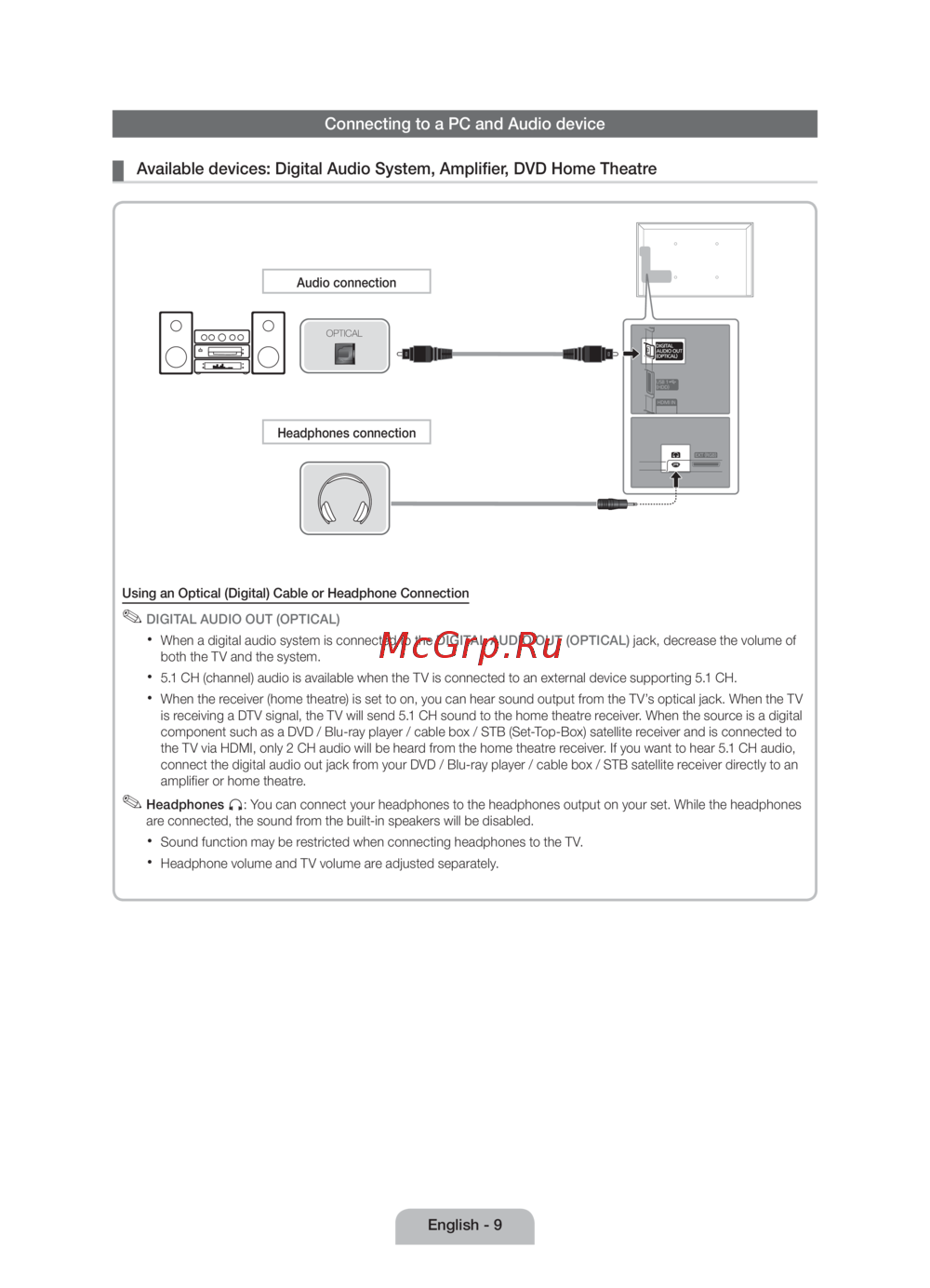 - Available devices digital audio system amplifier dvd home theatre p.9