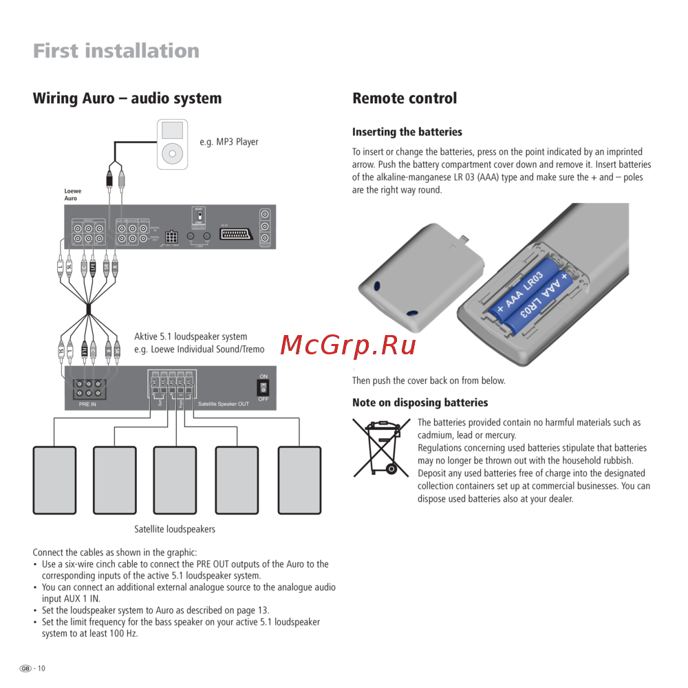 Loewe Auro 2216 — установка и настройка активной 5.1 аудиосистемы. Подключение, AUX вход, пульт [10/44]
