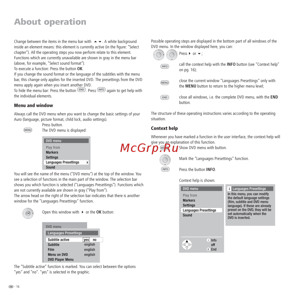 bar, this change only applies for the inserted DVD. The presettings from the DVD