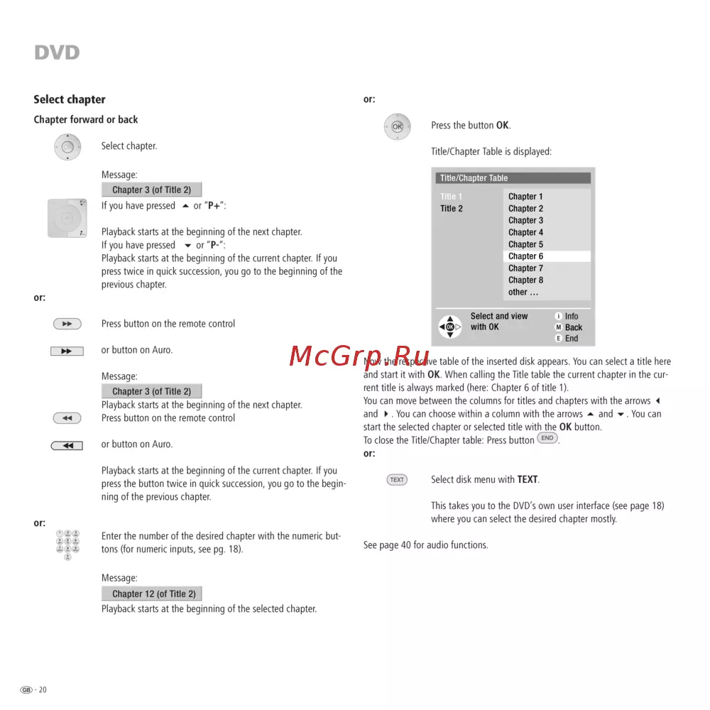 and start it with OK. When calling the Title table the current chapter in the cur-