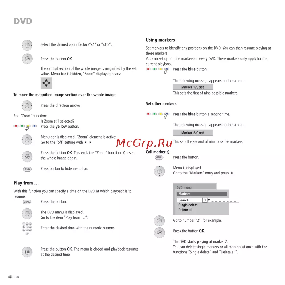 Set markers to identify any positions on the DVD. You can then resume playing at