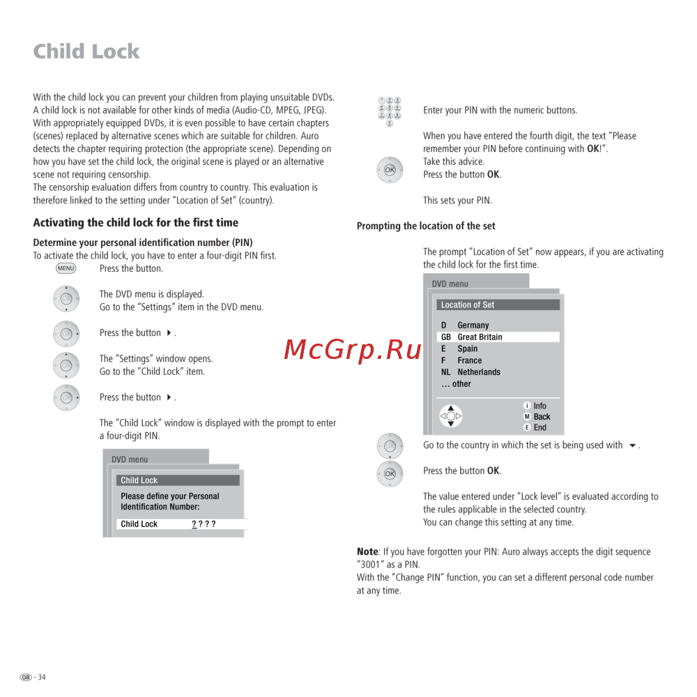 With the child lock you can prevent your children from playing unsuitable DVDs.