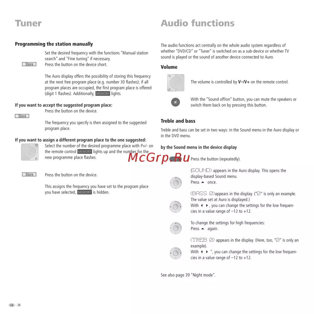 Treble and bass can be set in two ways: in the Sound menu in the Auro display or