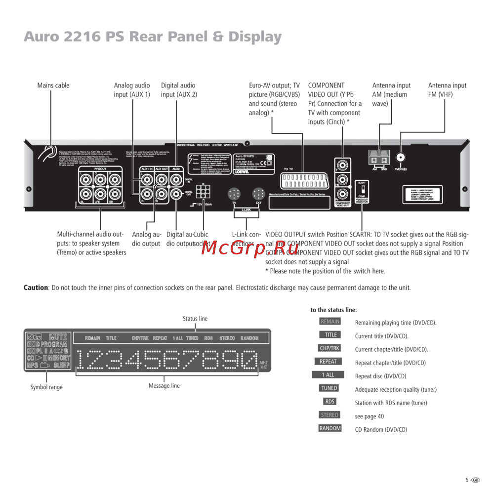 Caution: Do not touch the inner pins of connection sockets on the rear panel. Electrostatic discharge may cause permanent damage to the unit.