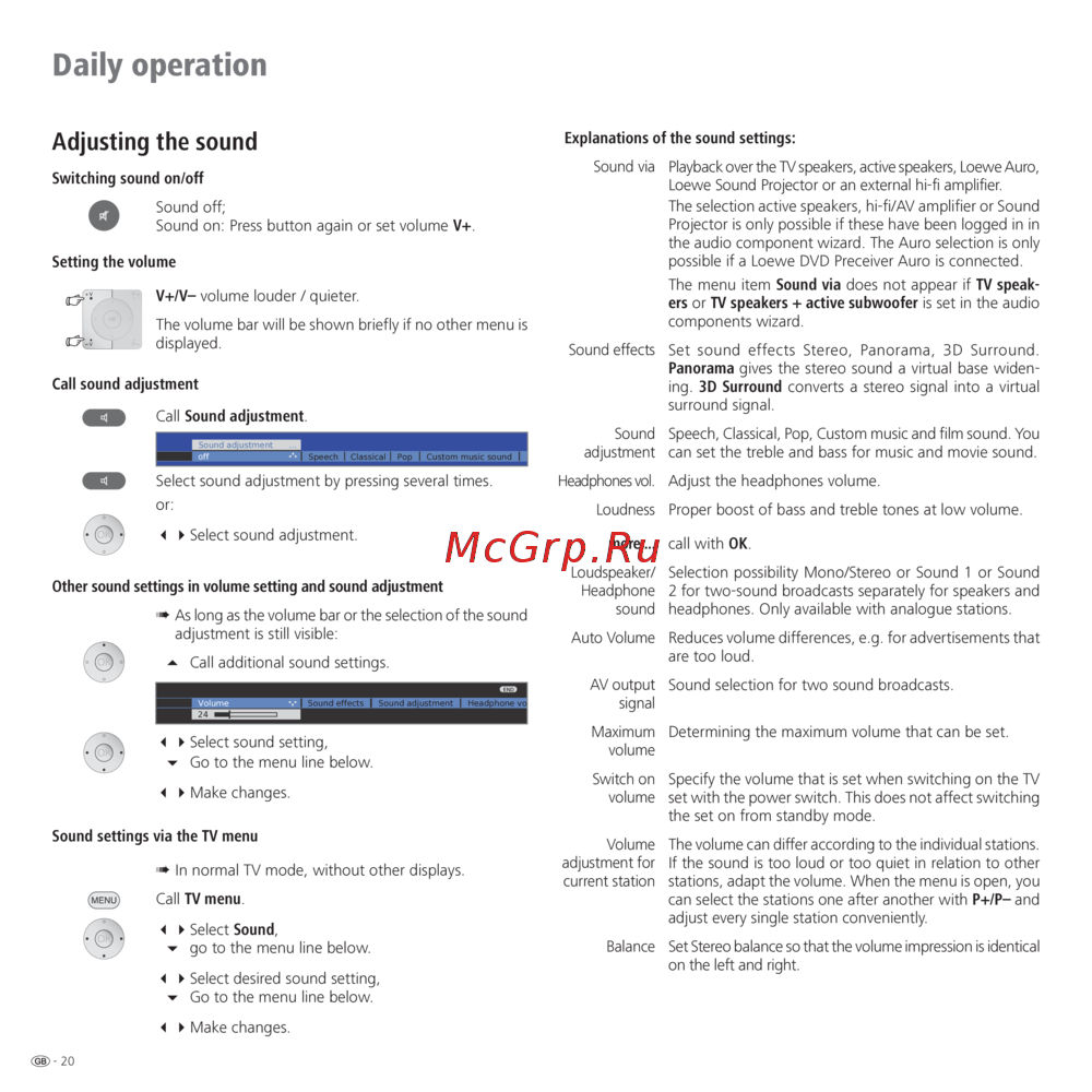 Loewe Connect 32 LED — tV Sound Settings Guide: Volume, Audio Output & Effects Control [20/64]
