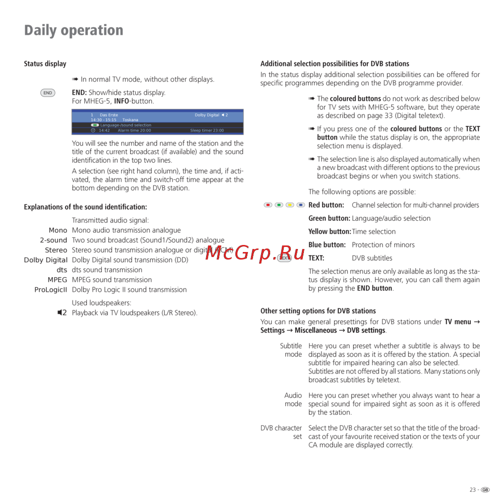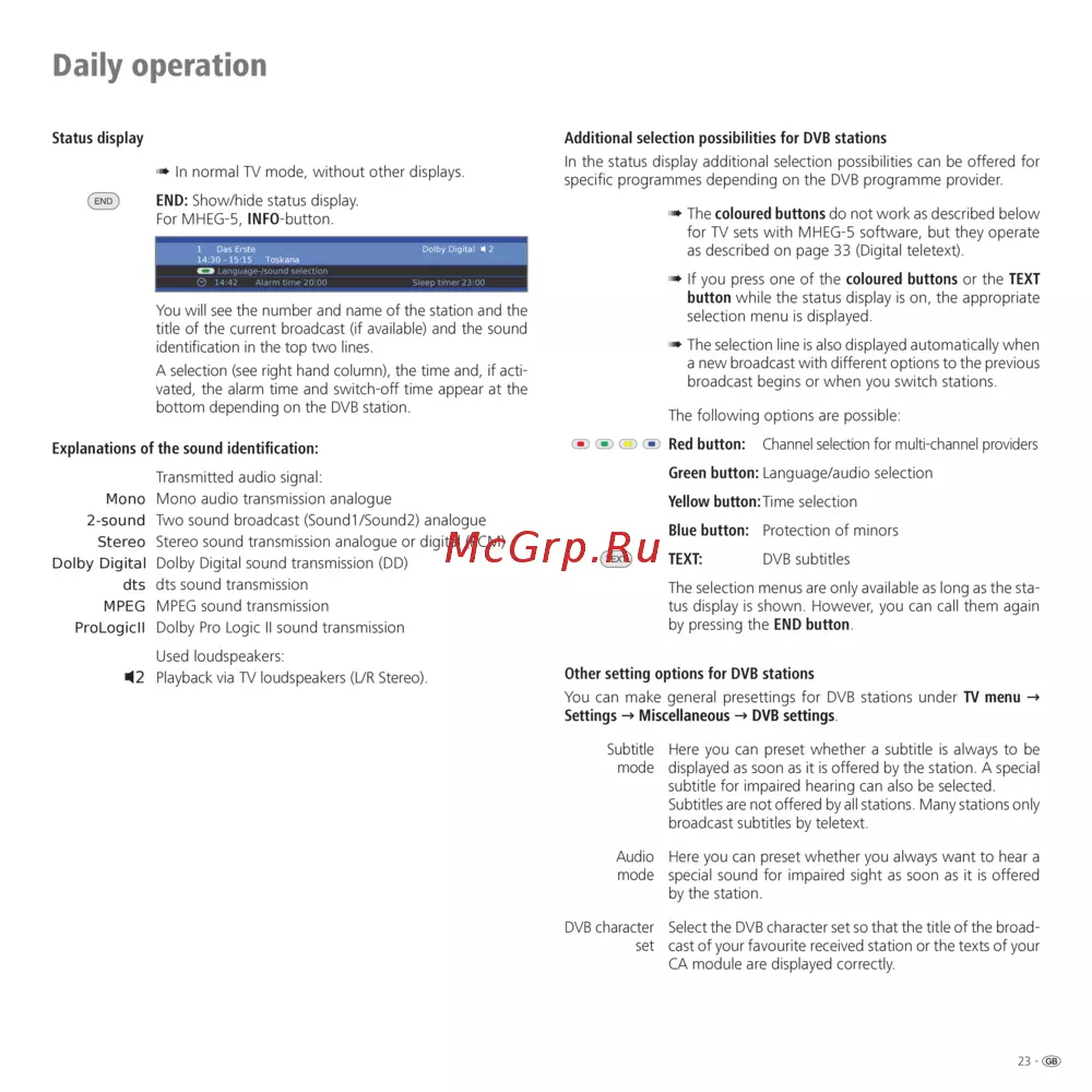 For MHEG-5, INFO-button.