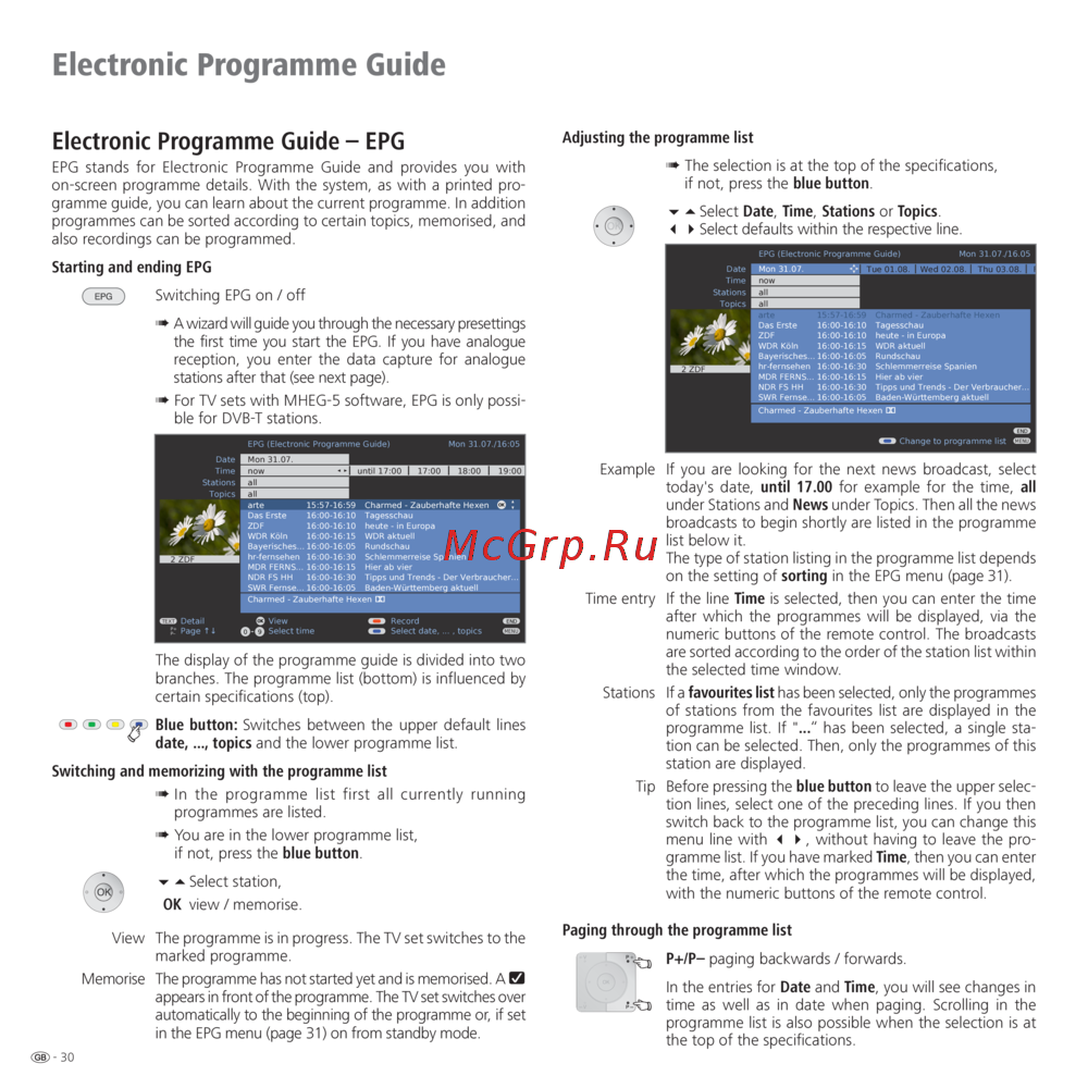 EPG (Electronic Programme Guide) Mon 31.07./16:05