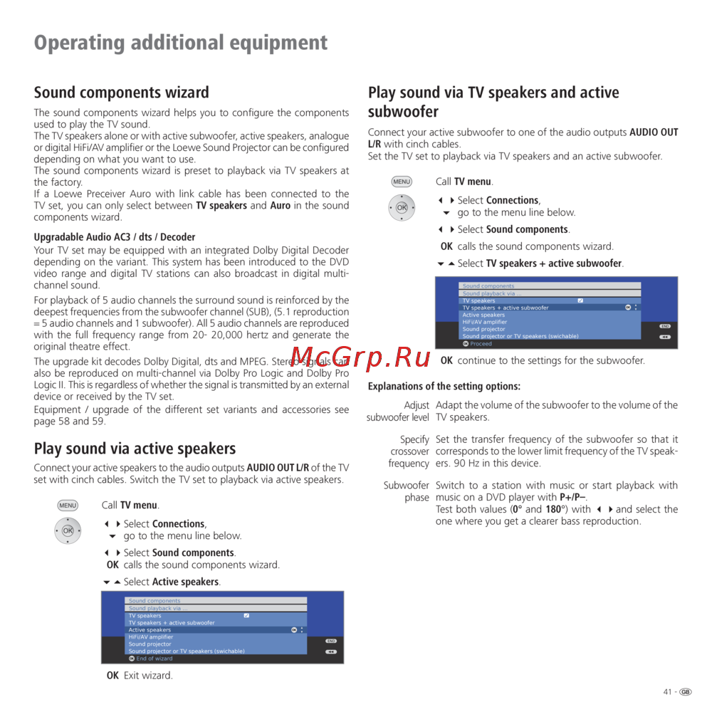 Loewe Connect 32 LED — настройка звуковых компонентов для телевизора [41/64]
