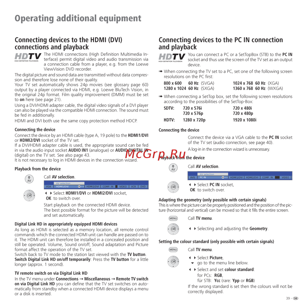 Loewe Connect 37 Full-HD+ [39/64] Oper ting ddition l equipment