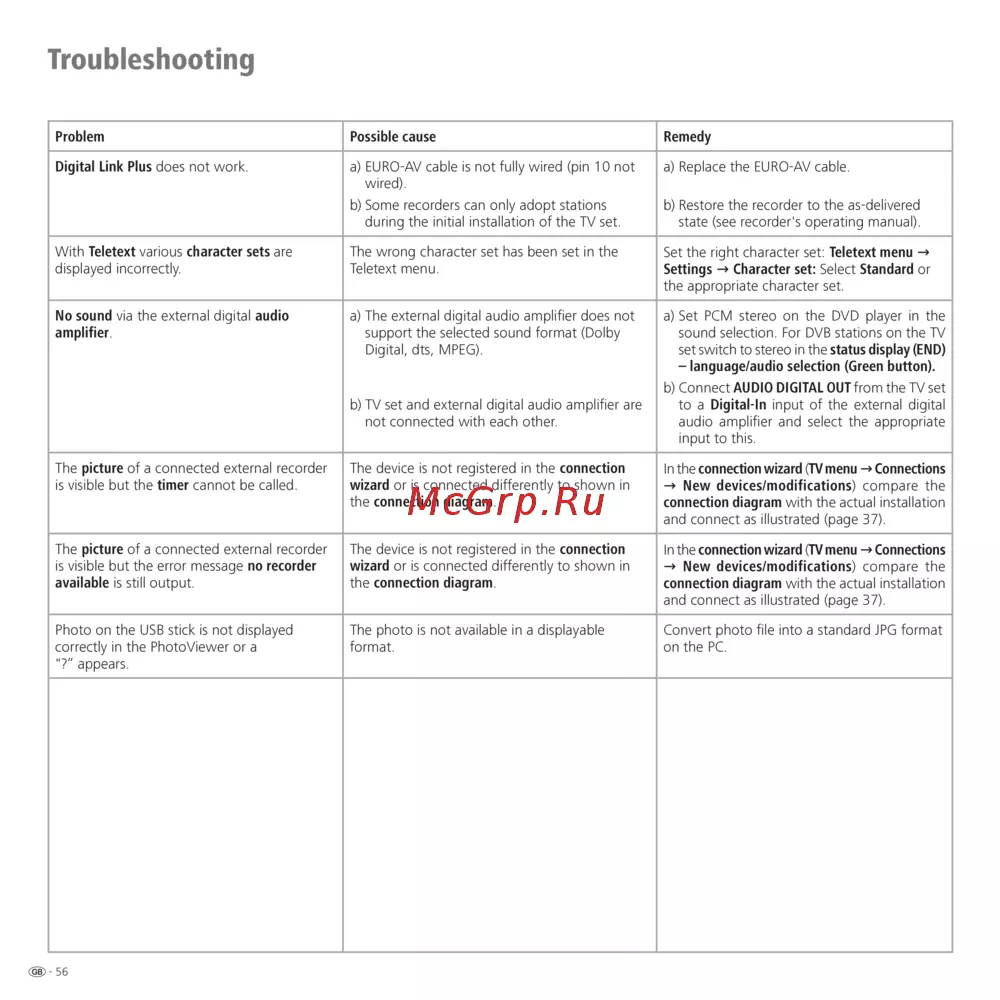 Loewe Connect 37 Full-HD+ [56/64] Troubleshooting