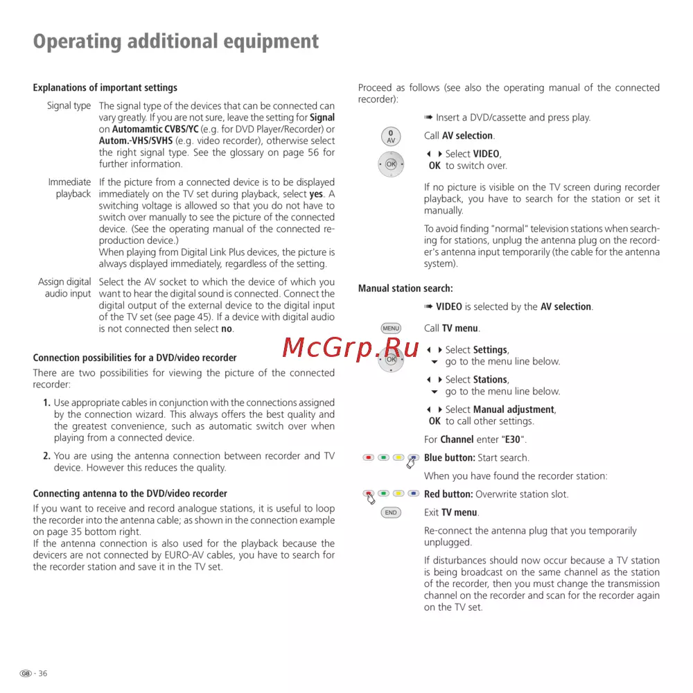 - Inthenextstep theconnectiondiagramshowshowto connecttheneworpresetdevicestotherearofthetv set inthisexamplethedvdplayer dvd to av1 thedvd recorder dvd to av2 p.35
