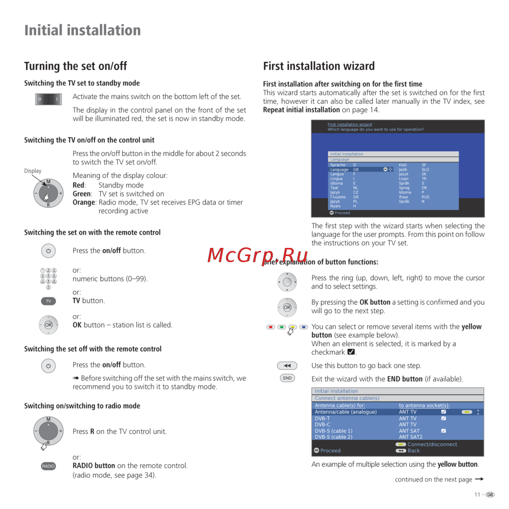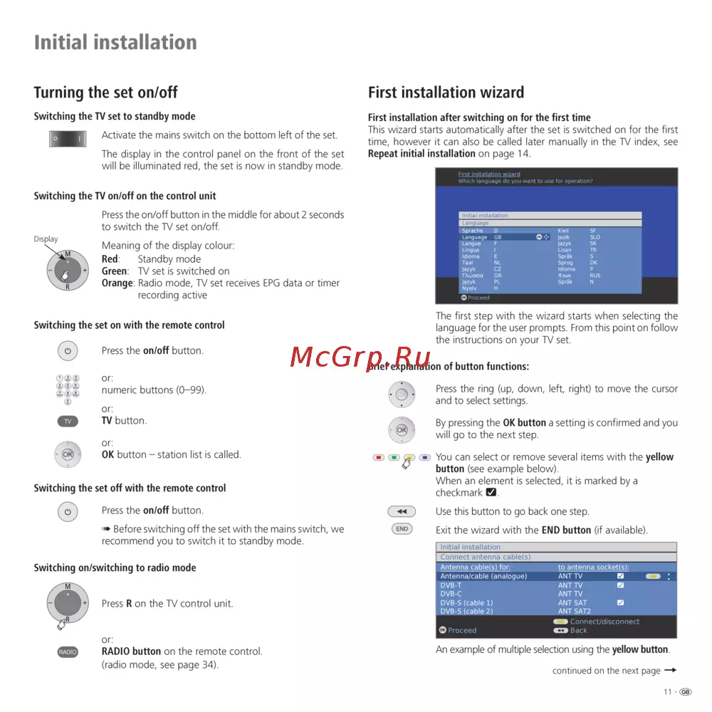 - Followtheinstructionsonthetvset thefollowingillustrationsprovideanoverviewofthe possibleoptions p.35