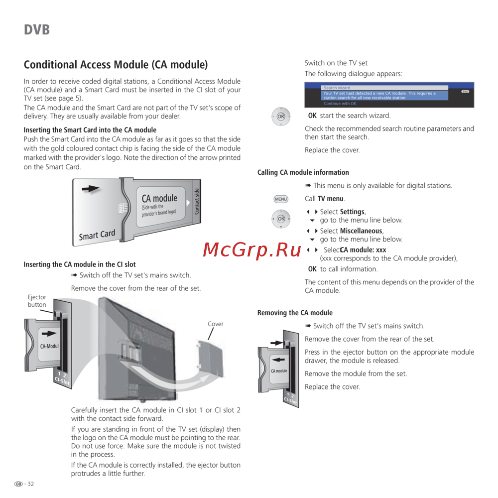 (CA module) and a Smart Card must be inserted in the CI slot of your