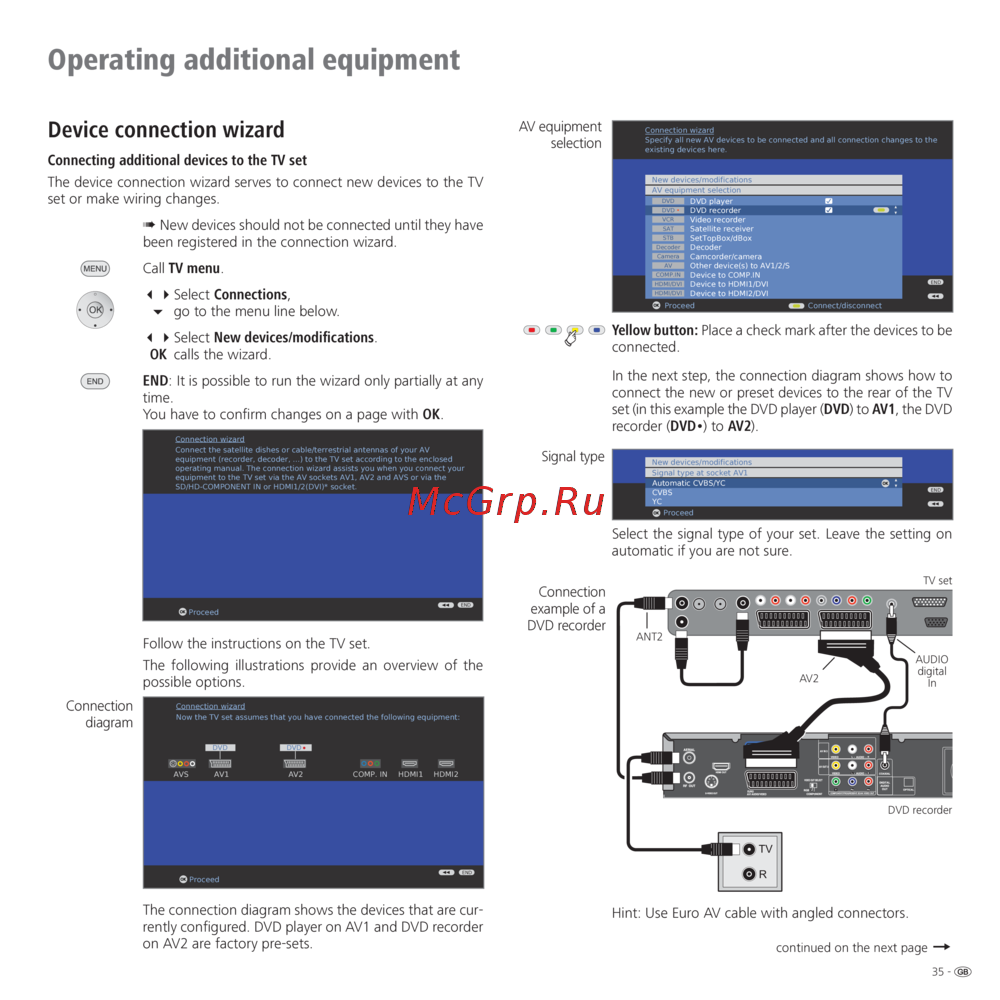 - Connecting additional devices to the tv set thedeviceconnectionwizardservestoconnectnewdevicestothetv setormakewiringchanges p.35