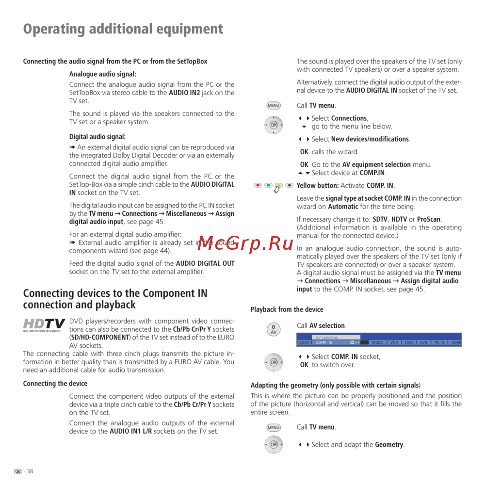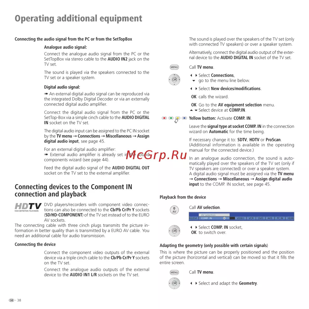 - Followtheinstructionsonthetvset thefollowingillustrationsprovideanoverviewofthe possibleoptions p.35