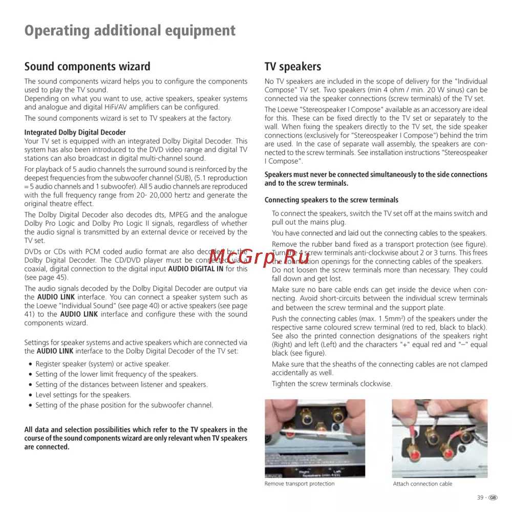 - Speaker system loewe individual sound on the dolby digital decoder of the tv set p.40