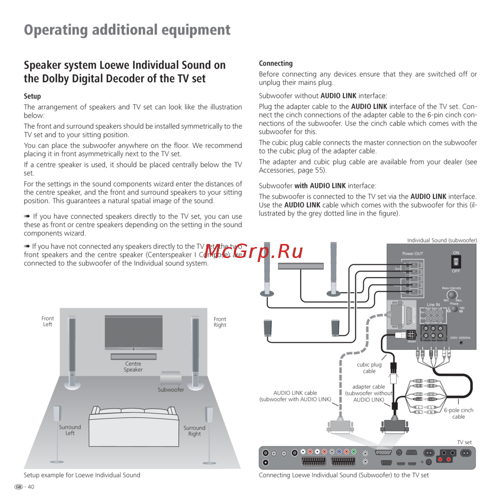 - Speaker system loewe individual sound on the dolby digital decoder of the tv set p.40