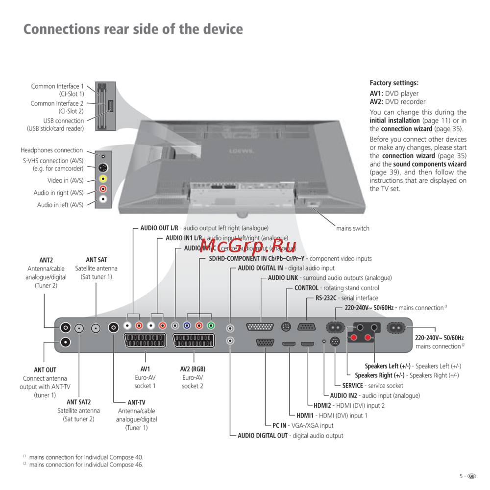 - Speaker system loewe individual sound on the dolby digital decoder of the tv set p.40