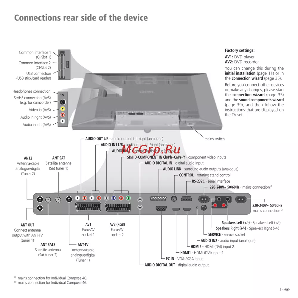 - Inthenextstep theconnectiondiagramshowshowto connecttheneworpresetdevicestotherearofthetv set inthisexamplethedvdplayer dvd to av1 thedvd recorder dvd to av2 p.35