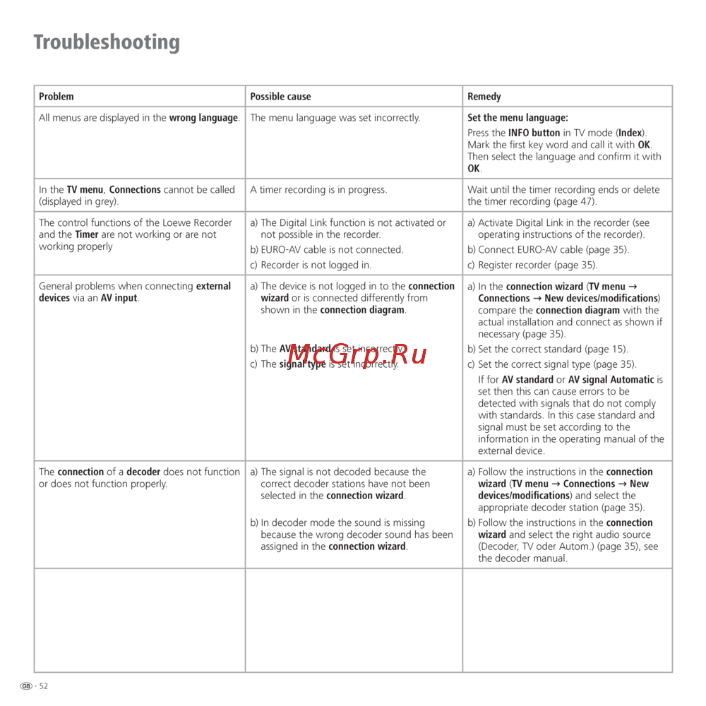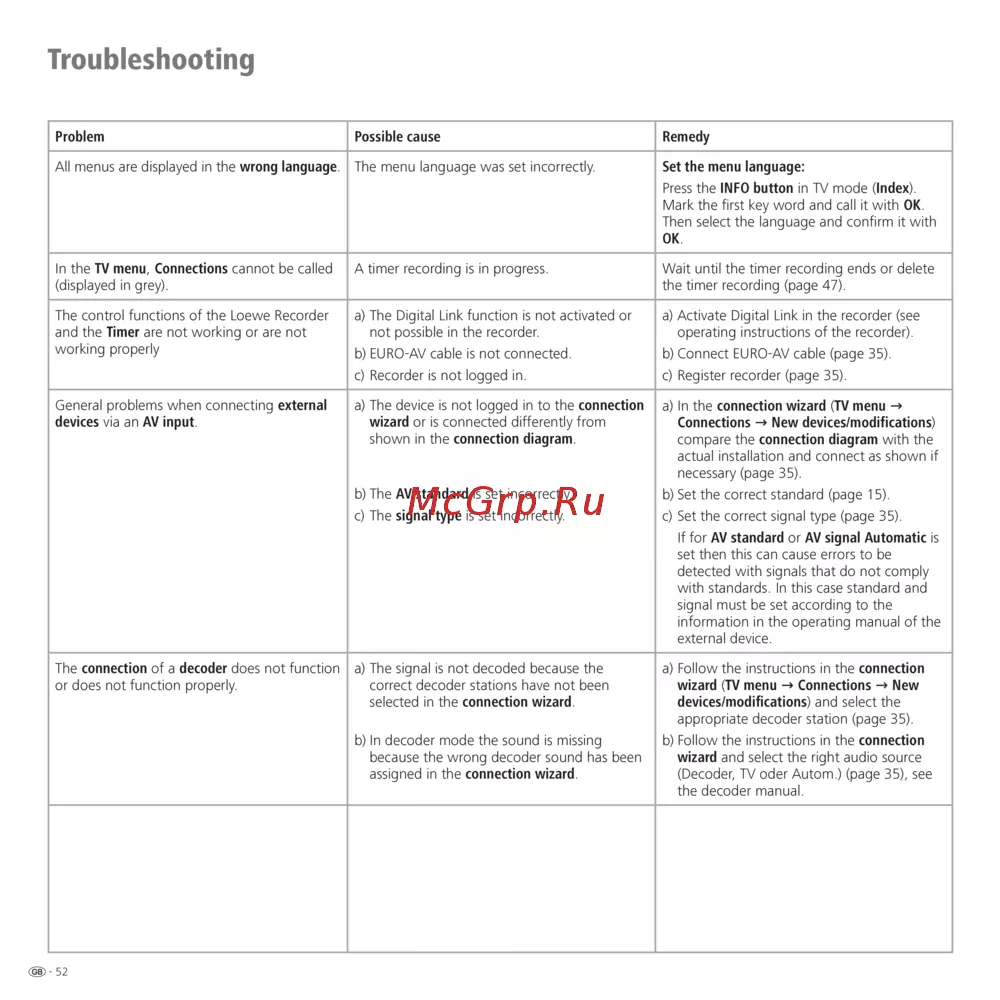 Loewe Individual 46 Compose Full-HD+ [52/60] Troubleshooting