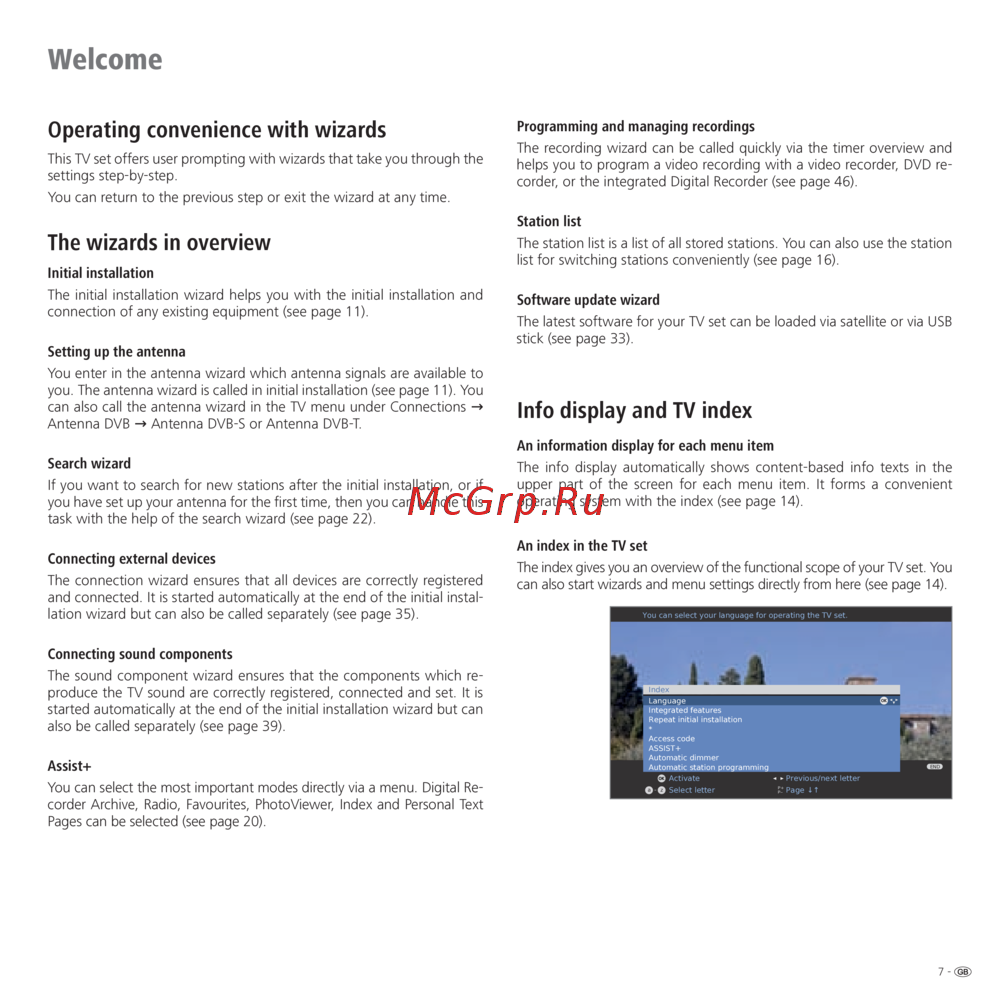 - Followtheinstructionsonthetvset thefollowingillustrationsprovideanoverviewofthe possibleoptions p.35