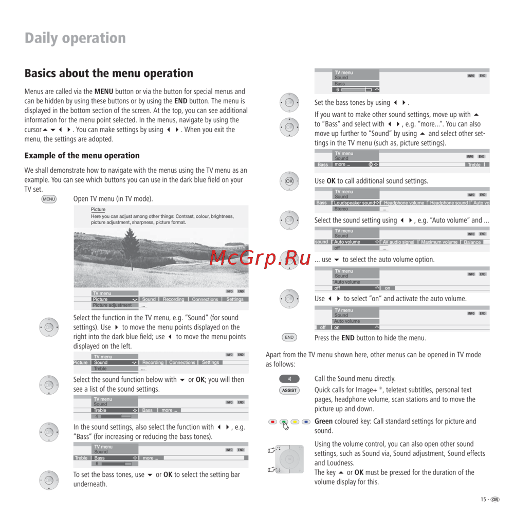 We shall demonstrate how to navigate with the menus using the TV menu as an