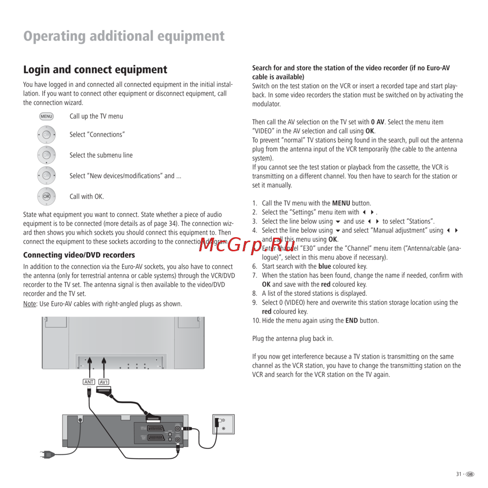 Then call the AV selection on the TV set with 0 AV. Select the menu item