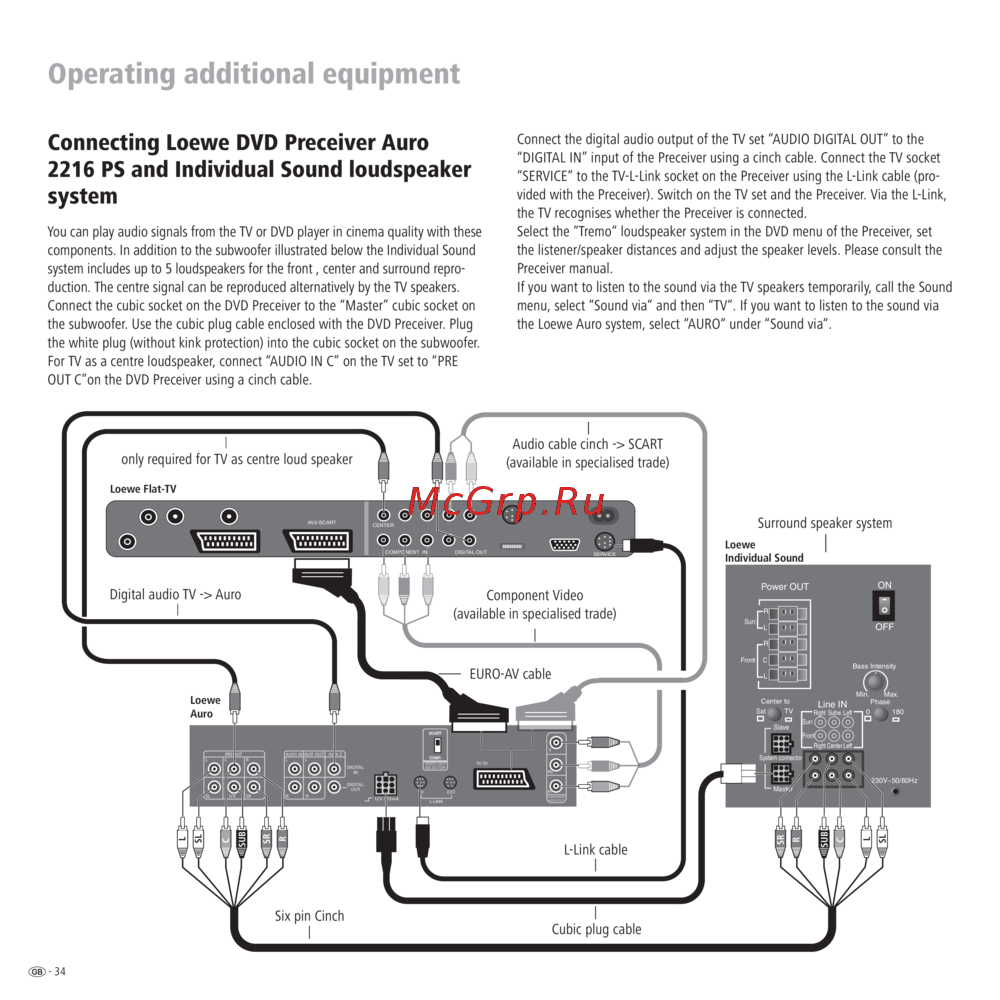 - Connecting loewe dvd preceiver auro 2216 ps and individual sound loudspeaker system p.34