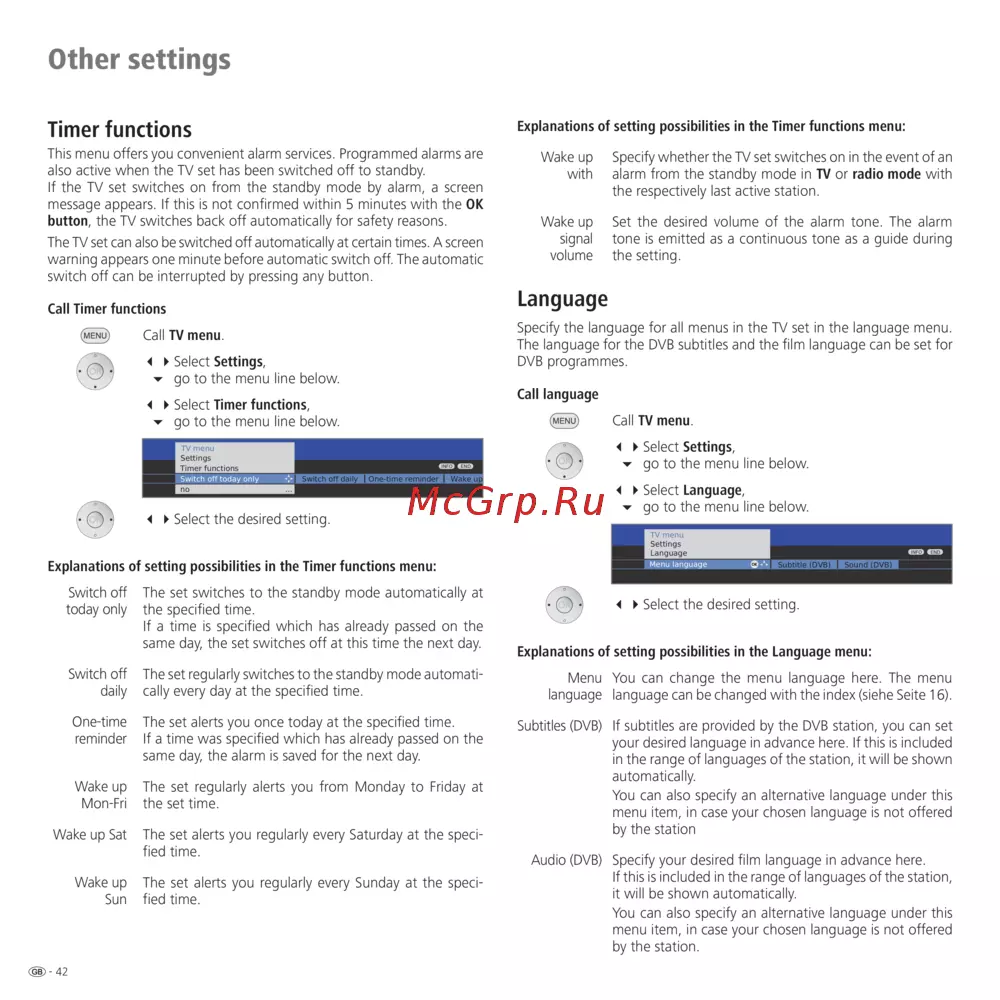 The TV set can also be switched off automatically at certain times. A screen