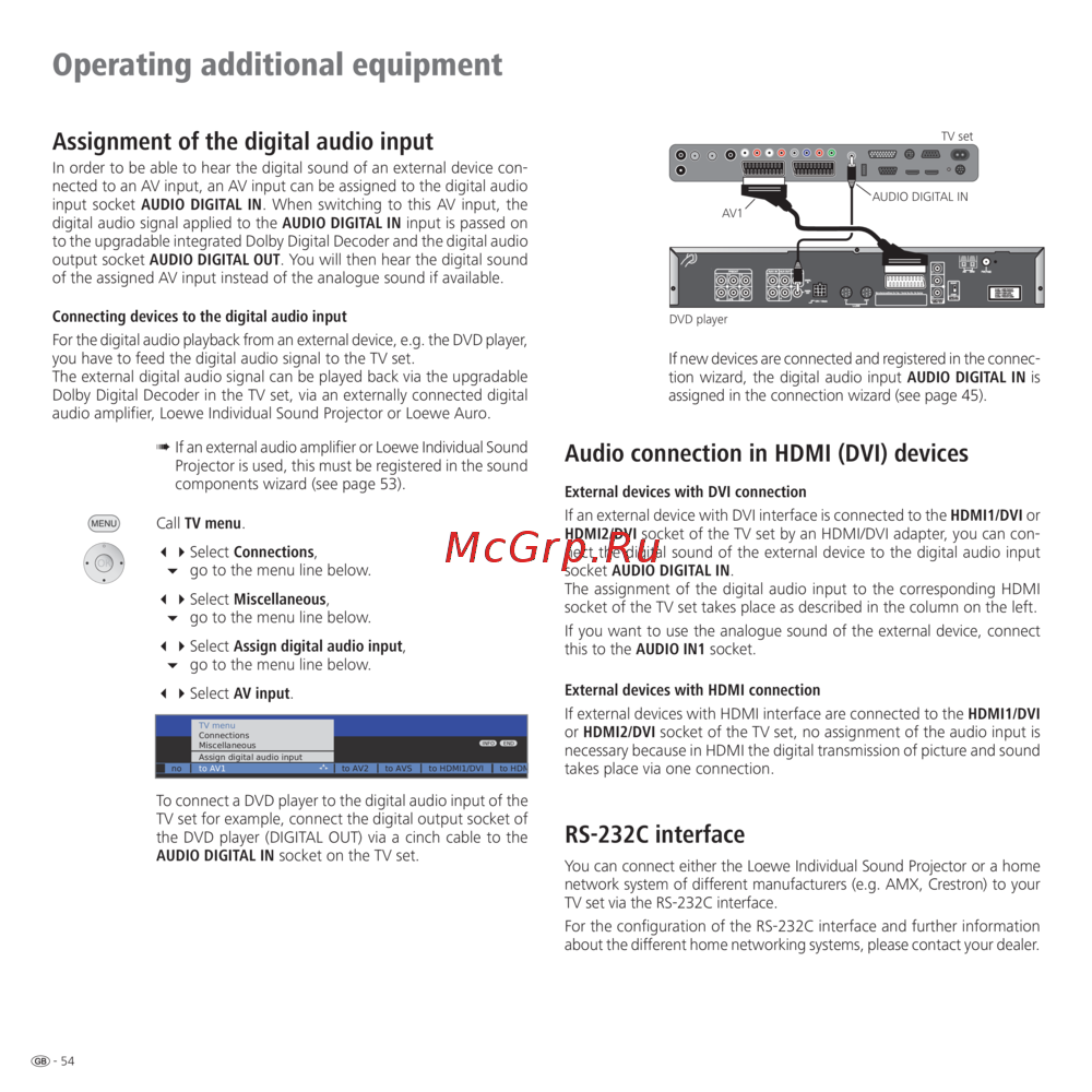input socket AUDIO DIGITAL IN. When switching to this AV input, the