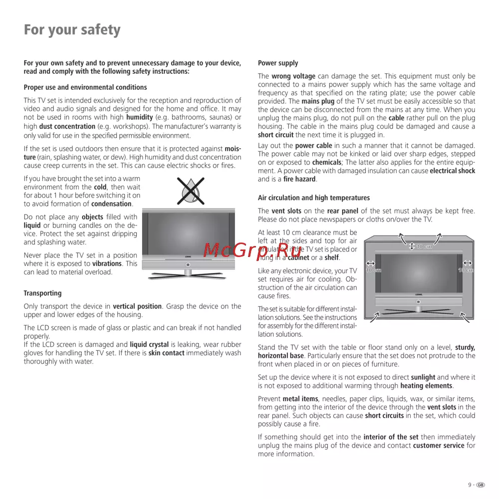 Loewe Individual 32 Selection — safety Instructions for TV Usage: Proper Handling, Environment, Power & Maintenance Guidelines [9/78]