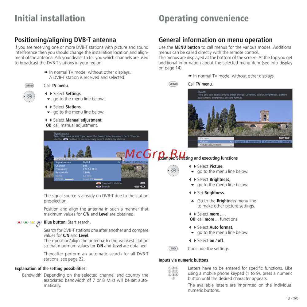 - Follow the instructions on the tv set the following illustrations provide an overview of the possible options p.35