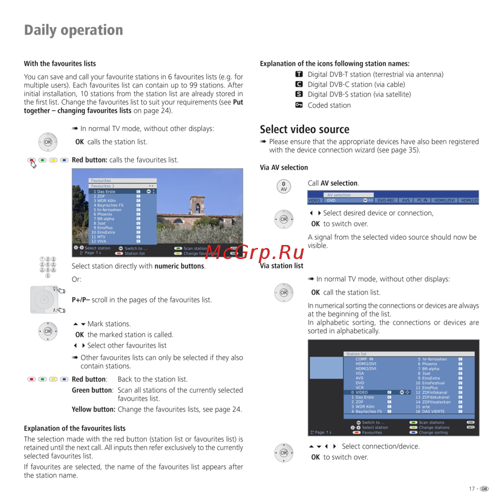 - Explanation of the icons after the station name digital dvb t station terrestrial via antenna digital dvb c station via cable digital dvb s station via satellite coded station p.34